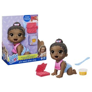 Baby Alive Lil Snacks Doll, Eats and “Poops,” 8-inch Baby Doll with Snack Mold, Toy for Kids Ages 3 and Up, Black Hair