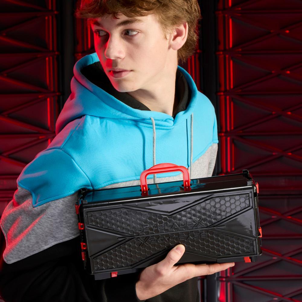 Experience Beyblade X, the next generation of Beyblade stadiums, launchers, and tops! Bladers launch their tops into fierce clashes against their opponent’s to score points – first to score 4 points wins. Bring the battle wherever go with the Beyblade X Clash and Carry Beystadium! This portable stadium opens into a battle arena and folds closed for easy carrying and storage. It features the X-Celerator Gear System to level-up your game. When the gear of a Beyblade X top engages the rail of the stadium, it can super-accelerate into an Xtreme Dash around the stadium for crushing collisions. Pair the Beystadium with launchers and the interchangeable blades, ratchets, and bits of Beyblade X tops to create your own unsurpassable Bey. (Launchers and tops sold separately, subject to availability.) Parents, scan the code on Beyblade X tops to battle in the Beyblade X app! Beyblade toys with authentic Takara Tomy die-cast metal tops make great kids gifts for boys and girls ages 8 and up. and all related terms are trademarks of .