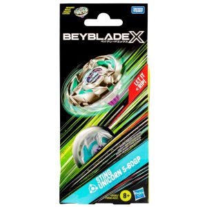 Experience the thrill of the next generation of Beyblade stadiums, launchers and tops: Beyblade X with the Beyblade X Sting Unicorn 5-60GP Booster Pack Set which includes 1 right-spinning Balance Type top (Beystadium and launcher required, sold separately). Launch right into battle or reconfigure the interchangeable blade, ratchet, and bit of this Booster Pack with those of other Beyblade X tops (sold separately) to create your own unsurpassable Bey. Beyblade X features the X-Celerator Gear System innovation to level-up your game. When the gear of a Beyblade X top engages the rail of the Beystadium arena, it can super-accelerate into an Xtreme Dash rocketing it around the stadium for crushing collisions and epic bursts. Bladers launch their tops into fierce clashes against their opponent’s scoring points with each confrontation – first to score 4 points wins. Beyblade toys with authentic Takara Tomy die-cast metal tops make great kids gifts for boys and girls ages 8 and up.HASBRO and all related trademarks and logos are trademarks of , Inc.