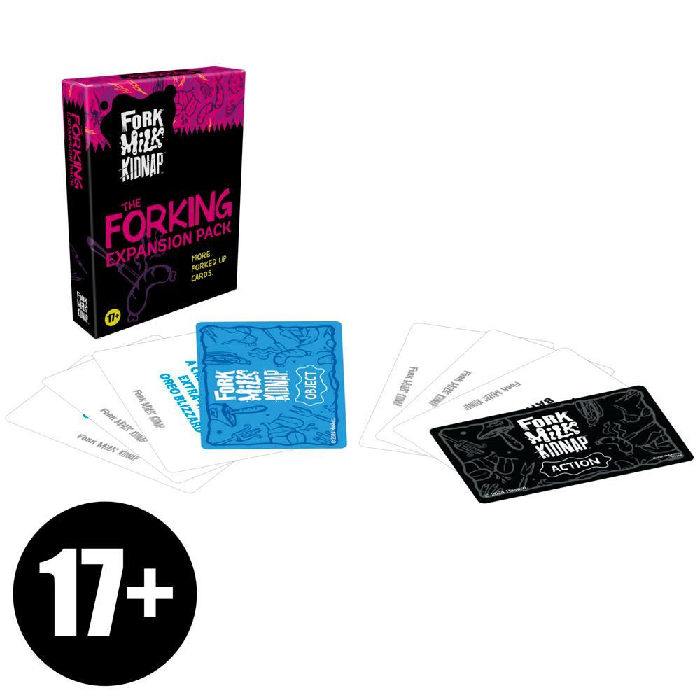 Fork around and find out what questionable choices are in store in the Fork Milk Kidnap: The Forking Expansion Pack! Includes 50 action and 50 object cards to add to the core game. Each round, flip over 3 of each. Then everyone secretly decides which object they would pair with each action for hysterically twisted scenarios. Take turns revealing all 3 of pairings and explaining your bad decisions. Players score a point when their pairings match the majority’s answers. The first to score 5 points wins! Looking for funny ice breaker games for adults or adult party games for game night? The Fork Milk Kidnap game for ages 17+ is a fun adult game for parties, girls nights in, date nights, and more. NSFW games for adults make great gifts, too. (Fork Milk Kidnap core game required to play. Sold separately.)Fork Milk Kidnap and and all related properties are trademarks of , Inc.