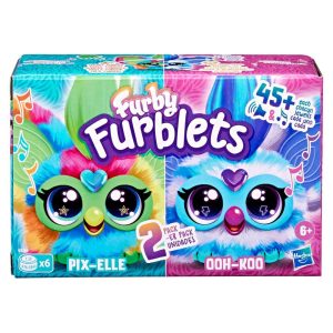Wah! Another mysterious and musical FURB-nomenon has come to our world: the Furblets! Share a smile and a jam session anywhere you go with this 2-pack of mini Furby electronic toys for girls and boys 6 years and up. These little friends are filled with big personalities as they each have 45 unique tunes, sounds, and Furbish phrases. Pix-Elle has pixelated multicolor fur and plays video game style music while Ooh-Koo is a rock ‘n roll star with blue and white striped fur. Clip them to a backpack or other travel bag with the keychain clip to bring the Furblets party anywhere you go. Furby and all related properties are trademarks of .