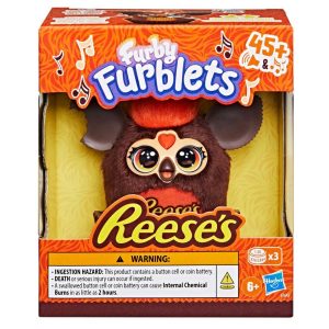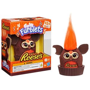 Furby Furblets toys and REESE’S are a perfect pair just like peanut butter and chocolate! Press the different buttons to hear funny eating noises, music, and phrases in the unique Furbish language (they don’t speak human languages). This 3 inch mini Furby toy also has wiggly peanut butter cup ears and comes with its very own plastic REESE’S cup that it can sit in to display. When you’re looking for some sweet gift ideas, this little buddy is fantastic for kids gifts, Valentine’s Day, Easter baskets, or any excuse to treat yo’self! REESE’S trademark and trade dress and the REESE’S Orange Color and Crown Design are used under license. Furby and all related properties are trademarks of .
