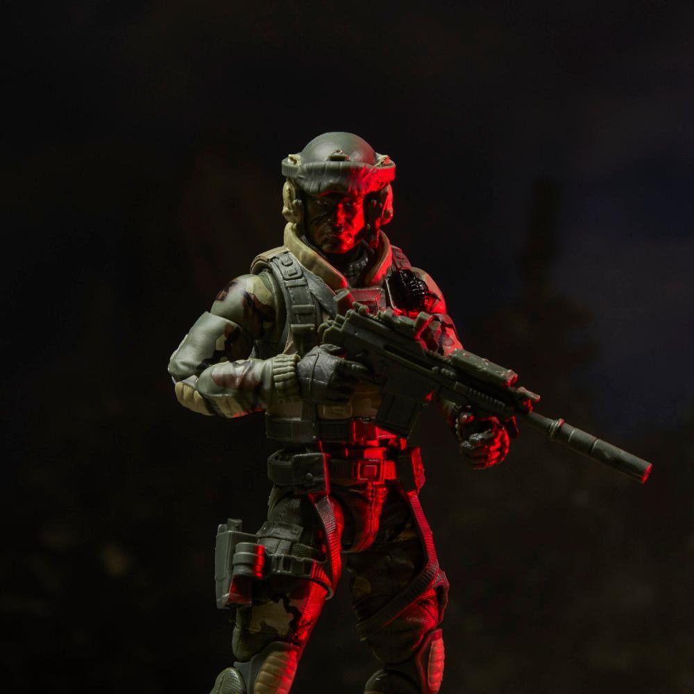 G.I. Joe debuted in 1964 with the Original Action Figure honoring the members of America’s military. The Action Soldier, Sailor, Marine, and Pilot left an indelible impression on generations and launched a toy franchise that continues to thrive finding new fans. In celebration of its 60th Anniversary, G.I. Joe is reaching back into its storied past to bring those movable fighting forces into the modern era. New to the G.I. Joe Classified Series line, 60th Anniversary Action Pilot – HALO (High Altitude Low Opening) Jumper comes ready for adventure, with multiple points of articulation for high poseability. This Pilot figure is bursting with 18 character-inspired accessory pieces including visored helmet with air hose, alternate helmet with night vision goggles, removable pouch, wrist altimeter, goggles, figure stand, and multiple weapon accessories; plus a foldable soft goods display parachute that can stow in the backpack. The G.I. Joe Action Pilot acts as a guardian of freedom and justice, never faltering, never failing, and never leaving a fellow behind.