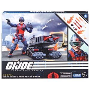 G.I. Joe is a highly skilled, on-demand, special operations force of men and women from around the globe. tasked with defending the world from Cobra, a ruthless criminal organization bent on total domination. The brave members of G.I. Joe are prepared to seek out Cobra in any environment on the planet. From hostile jungles to ice-clad arctic peaks…wherever there’s trouble, G.I. Joe is there. New to the G.I. Joe Classified Series line, Scrap-Iron & Anti-Armor Drone comes ready for adventure, with multiple points of articulation for high poseability. This Scrap-Iron & Anti-Armor Drone figure contains 11 character-inspired accessories including his missile-launching drone, drone controls, removable helmet, 6 blast effects, 2 missiles and a weapon accessory; plus a footlocker to stow all his gear! Scrap Iron is an anti-armor specialist and weapons designer whose passion for precision drove him to develop his own munitions. His remote-controlled drone is his latest development for Cobra. G.I. Joe and all related characters are trademarks of .