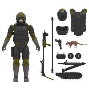 G.I. Joe is a highly skilled special operations force of men and women from around the globe. tasked with defending the world from Cobra, a ruthless criminal organization bent on total domination. Prepared to seek out Cobra in any environment on the planet…wherever there’s trouble, G.I. Joe is there. New to the G.I. Joe Classified Series line, Tripwire comes ready for adventure, with multiple points of articulation for high poseability. This Tripwire, Apsara, & M.A.C.L.E.O.D. Deluxe pack contains 15 character-inspired accessories including his bomb-sniffing rat “Apsara,” robot M.A.C.L.E.O.D. (Mobile Armored Control Lever for Ordnance Disposal) with remote control; mine sweeper, heavy and light armor gear, neck guards, and helmets, 2 mines, backpack, and weapon accessory; plus a footlocker to stow all his gear! Tripwire freaks people out. He’s always clumsy, jittery and dropping things except when he’s working with high explosives. Explosives are the only things that calm him down. G.I. Joe and all related characters are trademarks of .