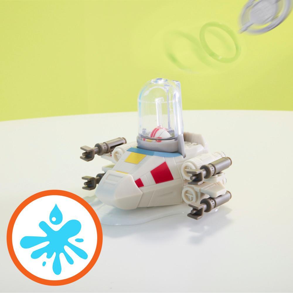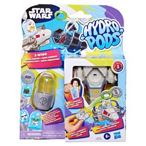 The Hydro Pods Star Wars X-Wing Aqua Armor is a collectible toy and a kids game all in one, complete with everything needed to launch into battle. First, fill the Hydro Pod with water, insert the target, and watch as the Luke Skywalker character is revealed. Next, place the Luke Skywalker pod in the included X-wing Aqua Armor. Load a disc into the included launcher and aim at the target. Nice shot! As the target flies off, the water drains out of the bottom of the pod and Luke Skywalker sinks in defeat. Create your own head-to-head battles with the Darth Vader TIE Fighter Aqua Armor (sold separately) to see who can splash into victory! Look for other Hydro Pods sets including even more Aqua Armor, playsets, and mystery packs with rare characters to trade with friends or give as gifts for kids ages 6 and up. (Sold separately. Subject to availability.)Star Wars products are produced by under license from Lucasfilm Ltd.Hydro Pods and HASBRO and all related trademarks and logos are trademarks of , Inc.