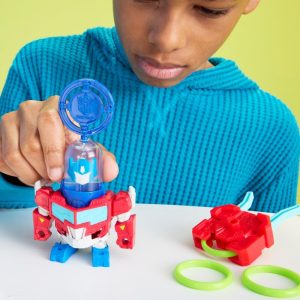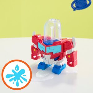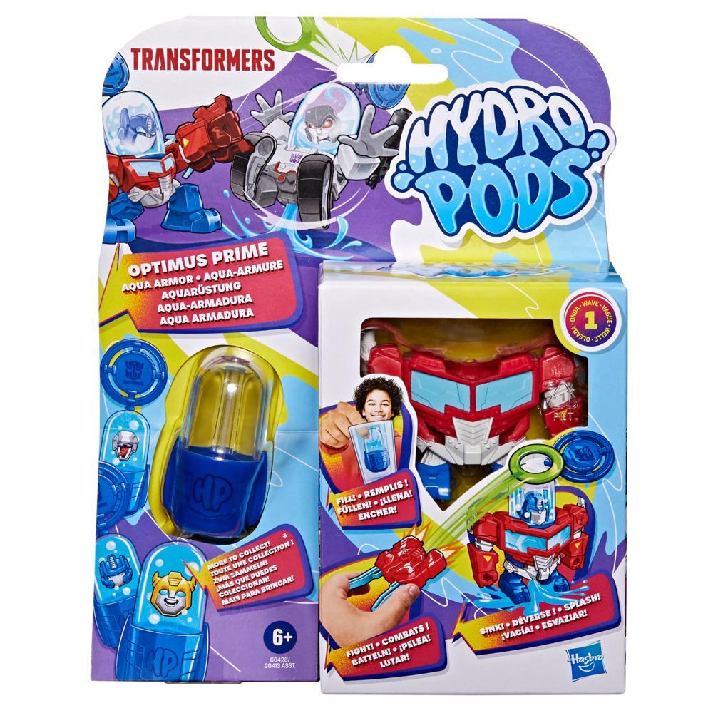 The Hydro Pods Transformers Optimus Prime Aqua Armor is a collectible battle toy, complete with everything needed to launch into hydro-powered action. First, fill the pod with water, plug in the target, and watch as the Optimus Prime character is revealed. Next, place the Optimus Prime pod in the included Aqua Armor, load a disc into the launcher, and aim at the target. Nice shot! As the target flies off, the water drains out of the bottom of the pod and Optimus Prime sinks in defeat. Create your own head-to-head battles with the Megatron Aqua Armor (sold separately) to see who can splash into victory! Look for other Hydro Pods sets including playsets and mystery starter packs with rare characters to trade with friends or give as gifts for kids ages 6 and up. (Sold separately. Subject to availability.)Hydro Pods, Transformers, and HASBRO and all related trademarks and logos are trademarks of , Inc.