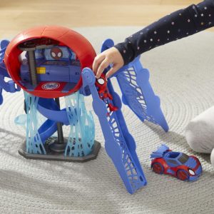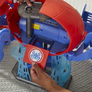 Your Spidey-Sense signals that this Web-Quarters playset hums with activity for Spidey and pals; this arachno-hub seems to come alive with Spidey-speak, light-up eyes, and many cool corners to play in for loads of Webtacular fun! It’s Spidey Time! Marvel’s Spidey and His Amazing Friends follows the adventures of the Super Hero Spidey and all his heroic friends! Spidey, Ghost-Spider, and Miles Morales: Spider-Man all have super spider-powers: spider-sense, super-strength, wall-crawling, and more! They’re even stronger when they’re working together as the amazing Spider Team! But even the best team sometimes needs a helping hand; that’s when it’s good to have allies like Ms. Marvel, Black Panther, and even Hulk! It’s hard being a Super Hero, but it helps when you have such Amazing Friends! Copyright MARVEL. All trademarks and registered trademarks are the property of their respective owners. and all related terms are trademarks of .