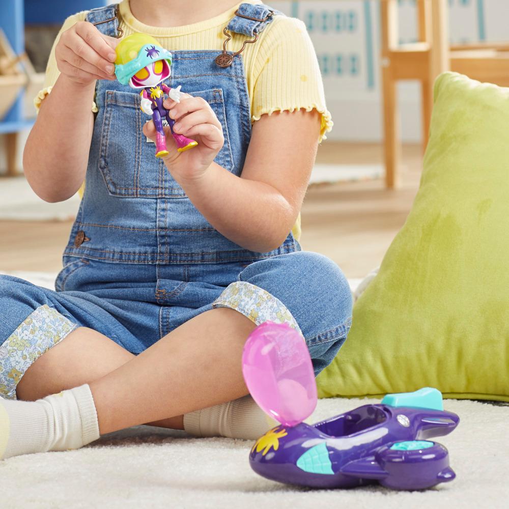 Speed to the rescue in awesome web-slinging style with Marvel Spidey and His Amazing Friends Web-Spinners Ghost-Spider with Glide Spinner! Glide Spinner super hero jet features its own unique character deco, matching 4-inch-scale Ghost-Spider action figure with an updated Web-Spinner suit, and helmet accessory to complete each toy vehicle playset. Spidey fans ages 3 and up will love rolling the toy jet along while activating web-spinning action! Collect all Spidey and Friends Web-Spinners toys for more imaginative on-the-road action and adventures! (Each sold separately. Subject to availability.) Copyright 2023 Marvel. and all related terms are trademarks of .