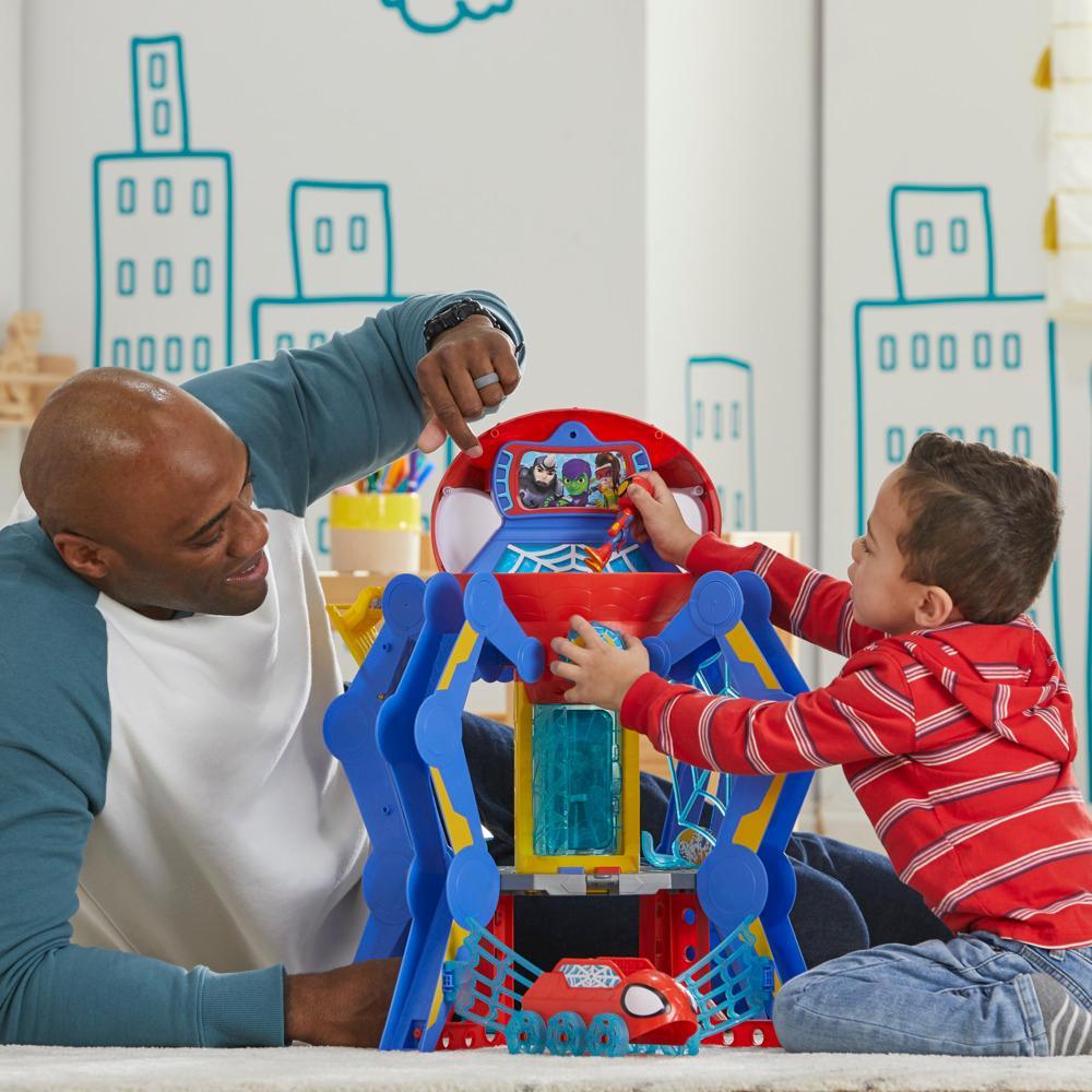 Little hands with big imaginations will enjoy this Marvel Spidey and His Amazing Friends Web-Spinners Web-Quarters toy set! Inspired by the hit preschool show, kids ages 3 and up will have hours of heroic fun with multiple play zones with action features, and 360-degree play. Defeat Zola, the newest baddie in town by placing included Spidey figure and toy car and speeding to the rescue! Playset also lights up with 50 sounds and phrases for an interactive, immersive experience for Spidey’s littlest fans. Copyright 2023 Marvel. and all related terms are trademarks of .