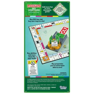 Mr. Monopoly has opened the Sale Vault, and there’s more for sale than ever before! The Monopoly Buy Everything Expansion brings a fresh twist to the Monopoly game and takes half the time to play. Just add this expansion to the classic Monopoly gameboard, and everything is for sale. (Classic Monopoly game required to play. Sold separately.) Players can buy every space, and they can roll the Buy die to purchase more ways to win and abilities from the rotating Sale Vault. When all properties are owned, the richest player wins—or a player can win instantly by completing an instant-win Sale card! Break out this Monopoly extension for Family Game Night, vacations, and fast fun anytime. Family games and kids board games make cool kids gifts too. The HASBRO and MONOPOLY names and logos, the distinctive design of the gameboard, the four corner squares, the MR. MONOPOLY name and character, as well as each of the distinctive elements of the board and playing pieces are trademarks of , Inc. for its property trading game and game equipment.