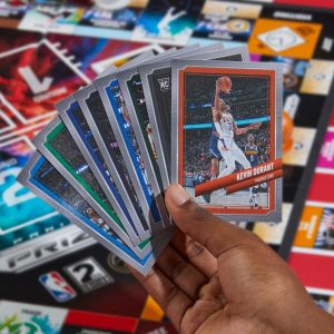 Collect, trade, and compete in the Monopoly Prizm: NBA Edition 2nd Edition board game—with 2023-24 Panini NBA trading cards! In this version of the Monopoly game, players use the Panini cards to draft their own team of 4 NBA players. Then, instead of buying Properties, they try to take control of NBA Games and collect points from opponents who land on them. To earn more points, players reveal and compare the stats on their Panini cards when they compete in Playmaker challenges and NBA Award contests. They can also use the Panini cards to trade NBA players or draft new ones. At the end of the game, the player with the most points wins! Looking for fun games for Family Game Night or cool gifts for kids or collectors? This strategy board game for kids and adults who love basketball is a slam dunk! Copyright Panini America, Inc.Copyright NBA Properties, Inc.Copyright the National Basketball Players Association.All rights reserved.The and Monopoly names and logos, the distinctive design of the gameboard, the four corner squares, the Mr. Monopoly name and character, as well as each of the distinctive elements of the board and playing pieces are trademarks of for its property trading game and game equipment.