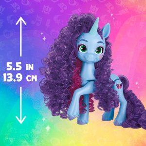 Customize beautiful hairstyles, awesome outfits, and fun accessories with My Little Pony Style of the Day Misty Brightdawn! Misty is a Unicorn on a journey of self-discover in the My Little Pony: Make Your Mark series. This My Little Pony figure comes with everything needed for music festival fashion. Kids can customize Misty’s curly mane and tail with a hair extension and clips and accessorize her outfit with jewelry and headphones. Use cold water to make her face paint design change colors, then apply warm water to change the colors back for repeatable fun. This My Little Pony unicorn toy is 5.5-inches tall with poseable arms and legs. Hair play doll also comes with a comb for brushing her purple mane and tail. This My Little Pony fashion doll makes a great Unicorn gift for girls and boys! Look for other Style of the Day toys for boys and girls age 5 and up (Each sold separately. Subject to availability). My Little Pony and all related characters are trademarks of .
