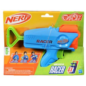Nerf Elite Junior Easy Play toy foam blasters are designed for boys and girls who are blasting into Nerf battles for the first time. Special features make them easy to play with, so kids will be playing exciting Nerf games in no time. They can launch into high-energy dart-blasting fun and experience the thrill of doing it all by themselves. These Nerf blasters are easy to hold, sized to fit comfortably in small hands and lightweight for easy carrying. The front-loading design makes inserting darts a simple step. Blasting is easy, with handles that have the lowest pull force of any Nerf dart blasters. All these features let kids get into lots of fast-moving action, and they can show off their blasting skills as they do each step on their own! The Easy Play Nerf Elite Junior Racer toy blaster has 2-dart capacity and includes 4 Nerf Elite darts. Eyewear recommended (not included). Blasters each sold separately, subject to availability. Nerf and all related properties are trademarks of .