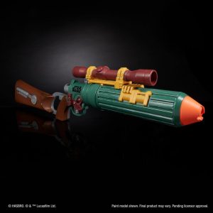 With his customized Mandalorian armor, deadly weaponry, and silent demeanor, Boba Fett was one of the most feared bounty hunters in the galaxy. Imagine scouring the galaxy for bounties with the Nerf LMTD Star Wars Boba Fett’s EE-3 blaster, which is meticulously detailed to capture the look of the blaster seen in The Book of Boba Fett live-action TV series on Disney Plus. It includes 3 drums, each with 4-dart capacity, so you can switch them out to reload, and 12 Nerf Elite darts. The 30-inch (76 centimeter) blaster has an electronic scope with an illuminated lens and makes series-accurate blaster sounds. It comes fully assembled in premium packaging, perfect for display. To fire a dart, load a drum, prime, and pull the trigger. Compatible with Nerf Elite darts. Eyewear recommended (not included). Requires 2x 1.5v AAA alkaline batteries (not included). Star Wars products are produced by under license from Lucasfilm Ltd. and all related terms are trademarks of .
