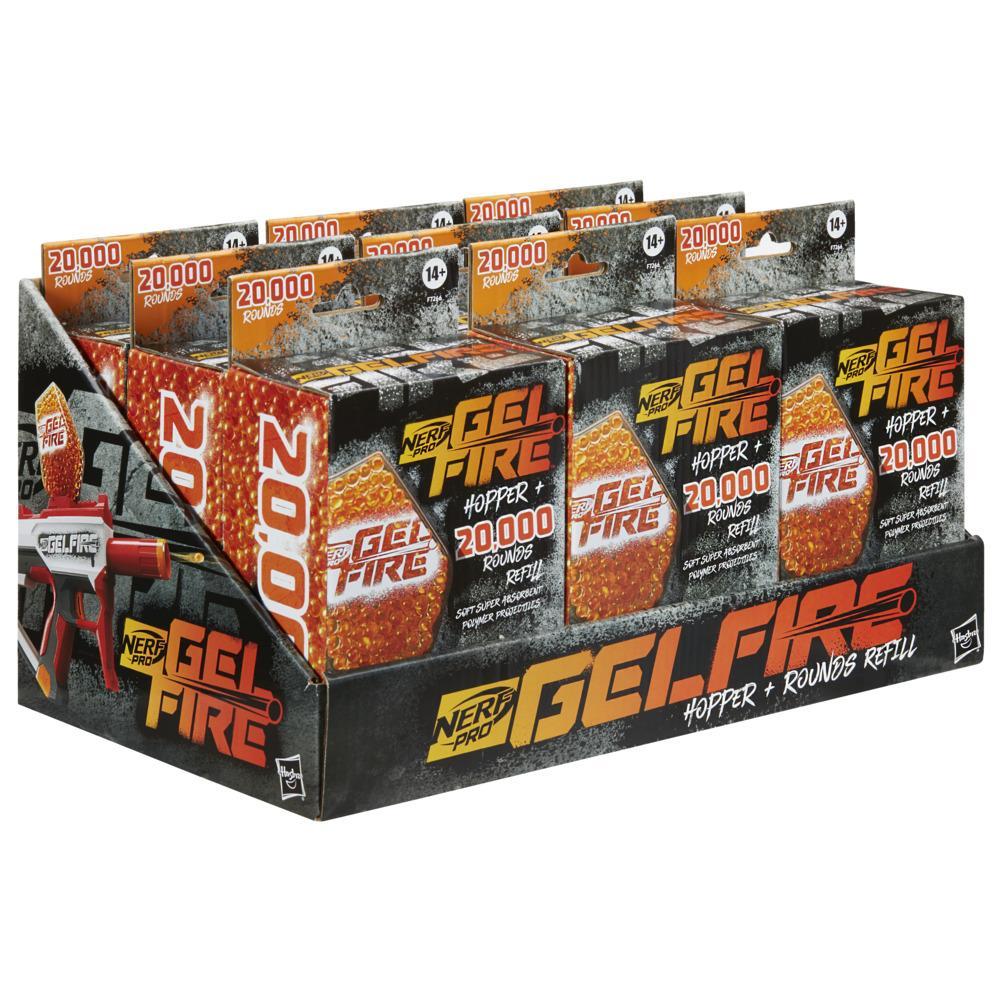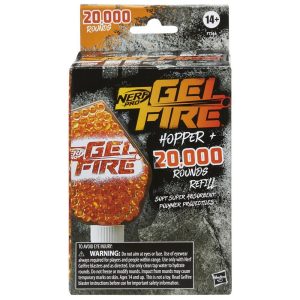 Stock up for battle with the Nerf Pro Gelfire refill pack for use with Nerf Pro Gelfire blasters. The refill includes a high-capacity 800-round hopper and 20,000 Nerf Pro Gelfire dehydrated rounds, a massive amount to overwhelm opponents in high-intensity competitive outdoor games. Add water to grow the rounds. These soft super absorbent polymer projectiles burst on impact, eliminating the need to pick up fired rounds. No one wants to run out of rounds when they’re in the middle of battle. This refill gives you additional rounds to keep you in the forefront of the action with an additional hopper and rounds. It’s a great gift for teens to keep them stocked up for Nerf Pro Gelfire battles. Play to win with high-capacity Nerf Pro Gelfire blasters that deliver superior performance. Ignite your competitive advantage and break the boundaries of battle with the Nerf Pro Gelfire system! Eyewear required (not included). Blasters each sold separately, subject to availability. For Ages 14 and up. Nerf and all related properties are trademarks of .
