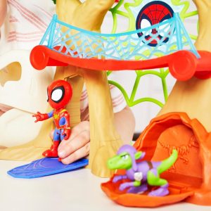 Imagine swinging into dino-chomping action and adventure with the Marvel Spidey and His Amazing Friends Dino-Webs Treehouse! This girls & boys action figure playset features a platform trap, dino fossil cave, collapsing web bridge, falling web cage, and more! The Dino-Webs Treehouse also comes with a 4-inch-scale (10cm) Spidey action figure and a 2.5-inch (6cm) Goblin Raptor toy, so preschool kids ages 3 and up can race into action to help Team Spidey take down the baddies! Inspired by the Marvel preschool show, kids will love hanging with their favorite Marvel Super Heroes and recreating epic adventures. Encourage big, imaginative adventure play for kids with more Spidey and his Amazing Friends toys! (Each sold separately. Subject to availability.)Copyright MARVEL. All trademarks and registered trademarks are the property of their respective owners.HASBRO and all related trademarks and logos are trademarks of , Inc.