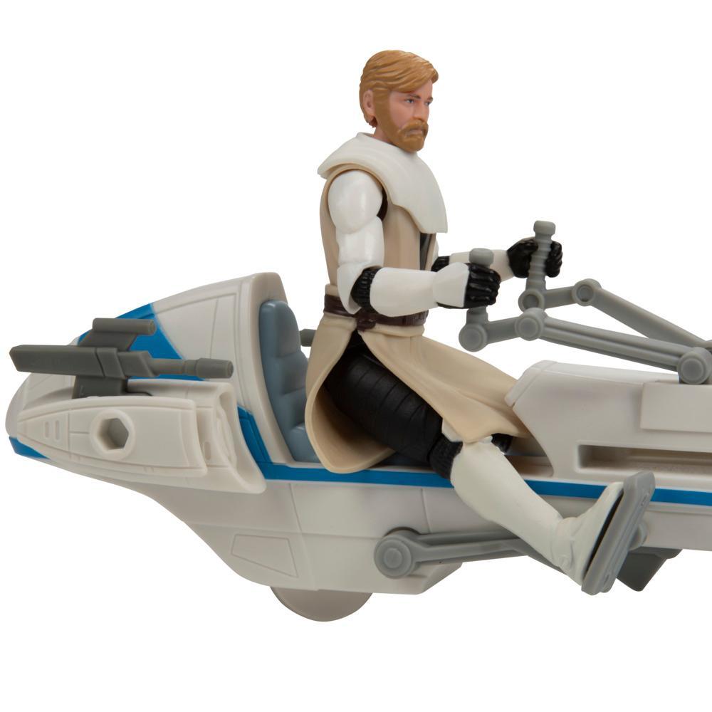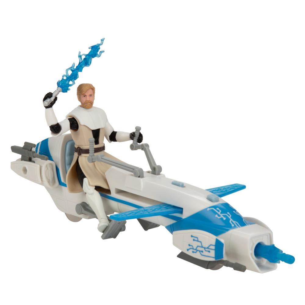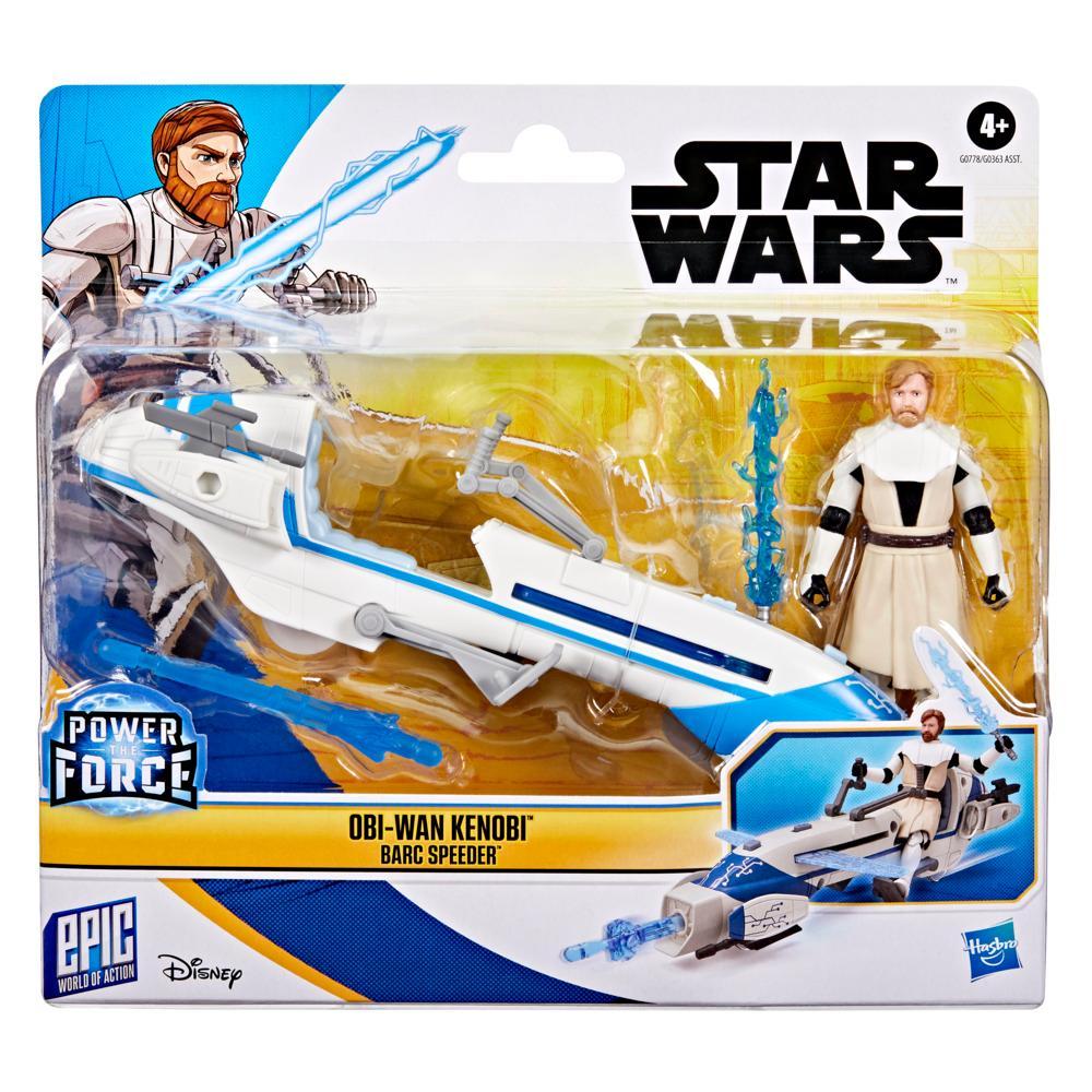 Imagine racing through the galaxy with the Star Wars Epic World of Action Obi-Wan Kenobi & BARC Speeder Bike. This Obi-Wan Kenobi action figure easily fits on the included BARC speeder bike, featuring adjustable handlebars and footholds. Kids can imagine taking down galactic enemies with the projectile launcher and the pop-out blade feature of the BARC speeder. Standing at 4 inches tall (10 cm) and featuring 9 points of articulation, this action figure for kids is the perfect addition to your little fan’s collection. Look for even more figures and vehicles to collect across ‘s Epic World of Action, featuring kid-favorite characters and entertainment-inspired design. (Each sold separately. Subject to availability.)Star Wars products are produced by under license from Lucasfilm Ltd. and all related terms are trademarks of .