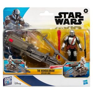 Imagine racing across the plains of Tatooine with the Star Wars Epic World of Action The Mandalorian & Speeder Bike. The Mandalorian action figure easily fits on the included speeder bike, featuring adjustable handlebars and footholds. Kids can imagine taking down galactic enemies with the projectile launcher, which can attach to either the top or side of the bike or fit right in the Mandalorian’s hands. Standing at 4 inches tall (10 cm) and featuring 9 points of articulation, this action figure for kids is the perfect addition to your little fan’s collection. Look for even more figures and vehicles to collect across ‘s Epic World of Action, featuring kid-favorite characters and entertainment-inspired design. (Each sold separately. Subject to availability.)Star Wars products are produced by under license from Lucasfilm Ltd. and all related terms are trademarks of .