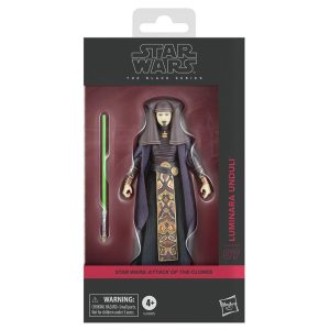 Star Wars The Black Series includes 6 inch action figures, vehicles, and roleplay items from the 40-plus-year legacy of the Star Wars galaxy, letting fans create galactic scenes with a faithfulness to Star Wars comic books, movies, and series. This Star Wars action figure is detailed to look like Luminara Unduli from Star Wars: Attack of the Clones. With exquisite features and decoration, The Black Series embodies the quality and realism that Star Wars devotees love. May the Force be with you! (Additional products each sold separately. Subject to availability.)Star Wars products are produced by under license from Lucasfilm Ltd.HASBRO and all related trademarks and logos are trademarks of , Inc.