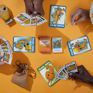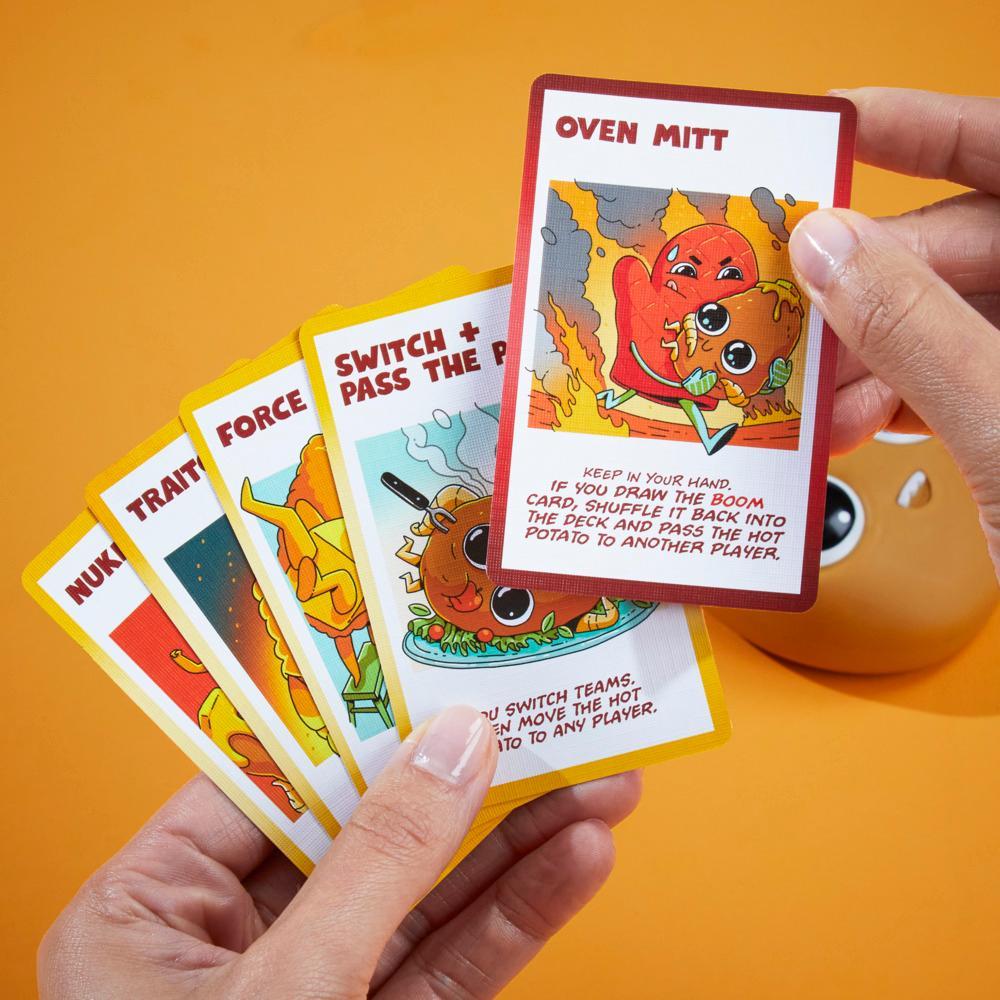 The Traitor Tots party game for adults and families is the hot potato card game of betrayal and sabotage! In this light strategy card game, players pass a Hot Potato, try to avoid its BOOM card, and get the most Chips to win. Take turns playing Action cards to steal Chips, switch teams, pass the Hot Potato, and more. Whenever someone plays a Nuke card, the player with the Hot Potato draws its bottom card. If they reveal the BOOM card, everyone on their team loses the round and anyone on the other team scores Chips. The player with the most Chips at the end of 3 rounds wins! The Traitor Tots game is a spudtacular, fast-paced game for kids and adults that livens up Family Game Night and get-togethers with best spuds. Fun party games and strategy card games also make cool gifts for kids, teens, and adults. Traitor Tots, Gaming and all related properties are trademarks of .