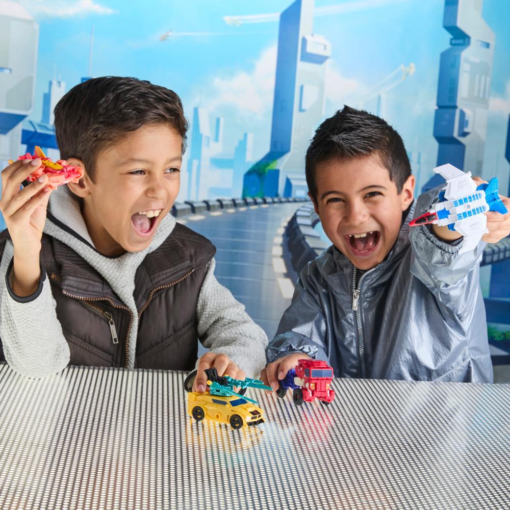 In Transformers CYBERWORLD, kids decide what happens — and it starts with awesome toys like the Optimus Prime Cyber Changers figure. This 4-inch (10 cm) Optimus Prime toy changes from robot to truck mode in just 4 steps that are simple enough for kids ages 6 and up. Give kids’ storytelling power a boost with additional CYBERWORLD toys (each sold separately, subject to availability), and discover unique characters, alt modes, environments, and more. Fans of Transformers collectibles and newcomers alike will love discovering this take on the Transformers universe, where the only constant is change.TRANSFORMERS and HASBRO and all related trademarks and logos are trademarks of , Inc.