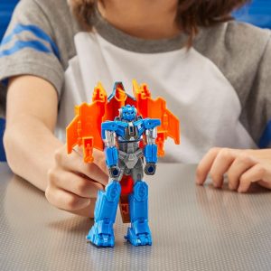 Experience the epic origins of legendary Transformers robots with these Transformers One Battling Robots action figures! This 4.5-inch (11.5 cm) Sentinel Prime figure converts from robot to Cybertronian jet mode in 3 steps, with simple conversion perfect for Transformers fans age 6 and up. Place the action figure on the Battle Base and slide the finger slots for cool action moves! The figure has articulated head, arms, and legs for awesome action poses. Includes a Battle Base and a sword that attaches in robot mode. This Robot Battlers action figure is inspired by an iconic character from the Transformers movie, Transformers One. Movie-inspired Interactive toys make cool gifts for boys and girls ages 6 and up. Transformers One is the untold origin story of Optimus Prime and Megatron, once friends bonded like brothers, who changed the fate of Cybertron forever.TRANSFORMERS and HASBRO and all related trademarks and logos are trademarks of , Inc. © 2024 .© 2024 Paramount Pictures Corporation. All Rights Reserved.