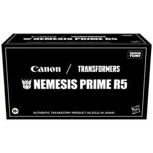 Bring the ultimate Transformers experience to your collection with the Takara Tomy Transformers Nemesis Prime R5 action figure! This adult collectible Transformers G1 action figure for adults features authentic Takara Tomy design and deco, in collaboration with Canon, Inc. The figure is showcased in premium deco and detail and comes in its original packaging with Japanese-language instructions. Figure does not function as a real camera. TRANSFORMERS and HASBRO and all related trademarks and logos are trademarks of , Inc. © 2023 . In cooperation with Canon Inc.