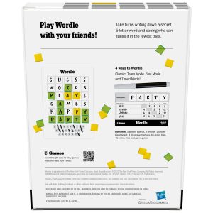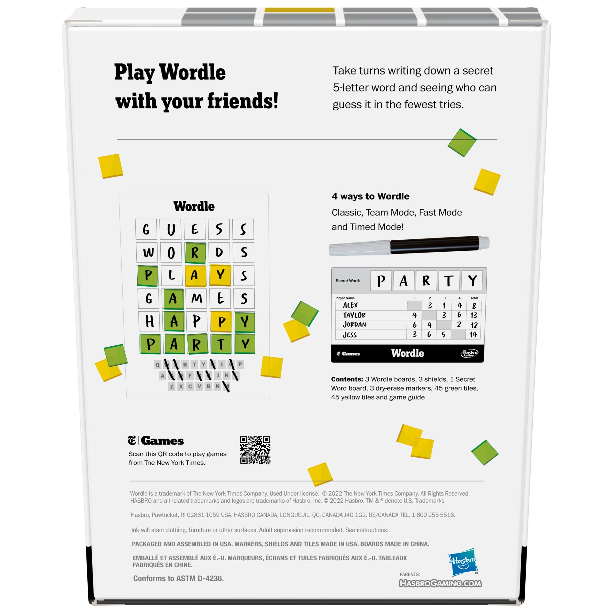 Love Wordle? Gather friends and family together to enjoy the favorite word-guessing game in real life with Wordle: The Party Game! Inspired by the digital version of the Wordle game, this analog game for 2-4 players delivers the classic Wordle gameplay as an exciting party game. Each round, a player designated as the Wordle Host writes down a Secret Word. Just like the original Wordle game, players try to guess it in the fewest tries (six max). But in this game, players are competing against others. The fewer tries a player needs, the fewer points they score. The player with the fewest points at the end of the game wins! Best of all, Wordle: The Party Game can be played more than once a day—the included dry-erase Wordle boards and markers mean unlimited play! To switch up the gameplay, choose from 3 more variations: fast, timed, or teams. A great game for game night with friends and family, Wordle: The Party Game makes a fun gift for ages 14 and up. Wordle is a trademark of The New York Times Company. Used under license. and all related terms are trademarks of .